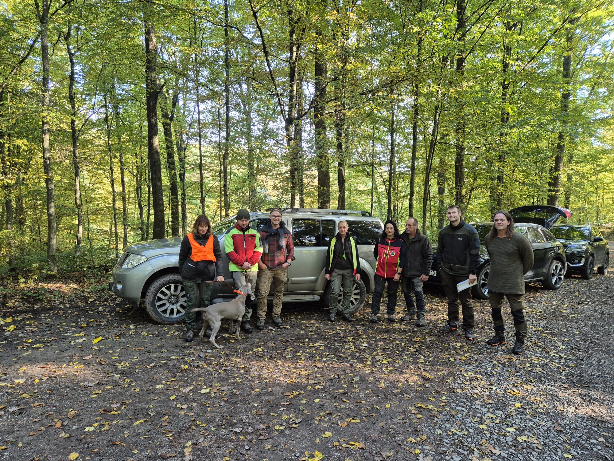 Die Magie und die Schwierigkeit der VGP besteht für mich auch besonders daraus, dass die Hunde auf den Punkt höchste Leistungen zeigen müssen und dies über zwei Tage und dann wieder in ihren Hundeboxen Ruhe finden sollen. Unsere Prüflinge haben das nach den Schweissfährten perfekt geschafft. Nach den «grossen Fächern» hat sich unsere Schlachtenbummlerei durch alle Anforderungen der Waldfächer gearbeitet, hier und da unterbrochen durch eine kleine Pause, umsetzen der Autos. Der geneigte Hundeführer kennt das Prozedere und als Richterin wuchs in mir auch ein Stolz darauf, dass ich so gut abgeführte Hunde richten durfte. Aber die VGP kommt nie ohne Tränen und unerwartete Ereignisse aus, irgendeinen «Das hat der noch nie gemacht!»-Moment gibt es immer an einer Stelle. Leider war unser «Das hat der noch nie gemacht!»-Moment ein tragischer. Beim letzten Fach des Tages, kurz vorm Eindunkeln und dem allgemeinen Tenor, dass wir das noch schaffen werden, kam der grosse Drahthaarrüde ohne den Fuchs auf der Schleppe zurück. Der Schleppenzieher hatte aber klar kommuniziert, dass dieser aufgenommen worden war.